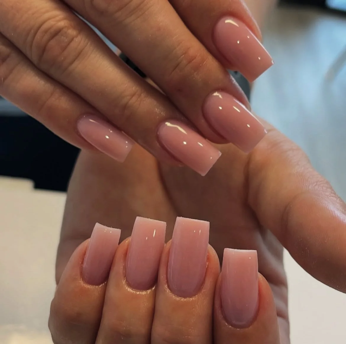 Acrylic full set include nail enhancement in square shape and one color gel polish. ( additional cost for almond, oval, ballerina, stiletto, coffin shapes)